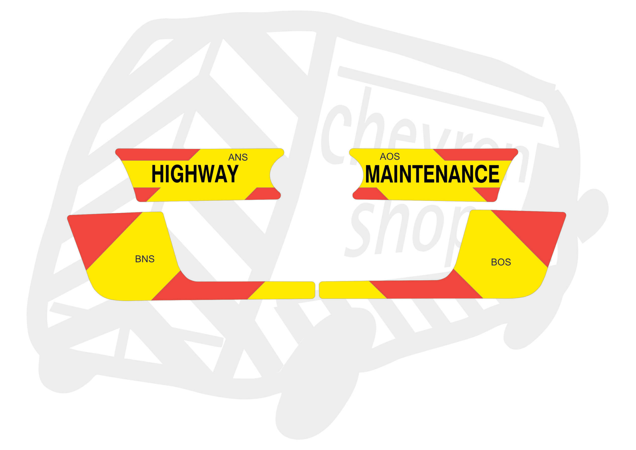(Standard Kit) Up to windows panels only of 150mm Chevrons in Fluorescent Yellow and Engineering Grade Red Reflective, incorporating ‘Highway Maintenance’ text in black gloss – All applied onto magnetic.