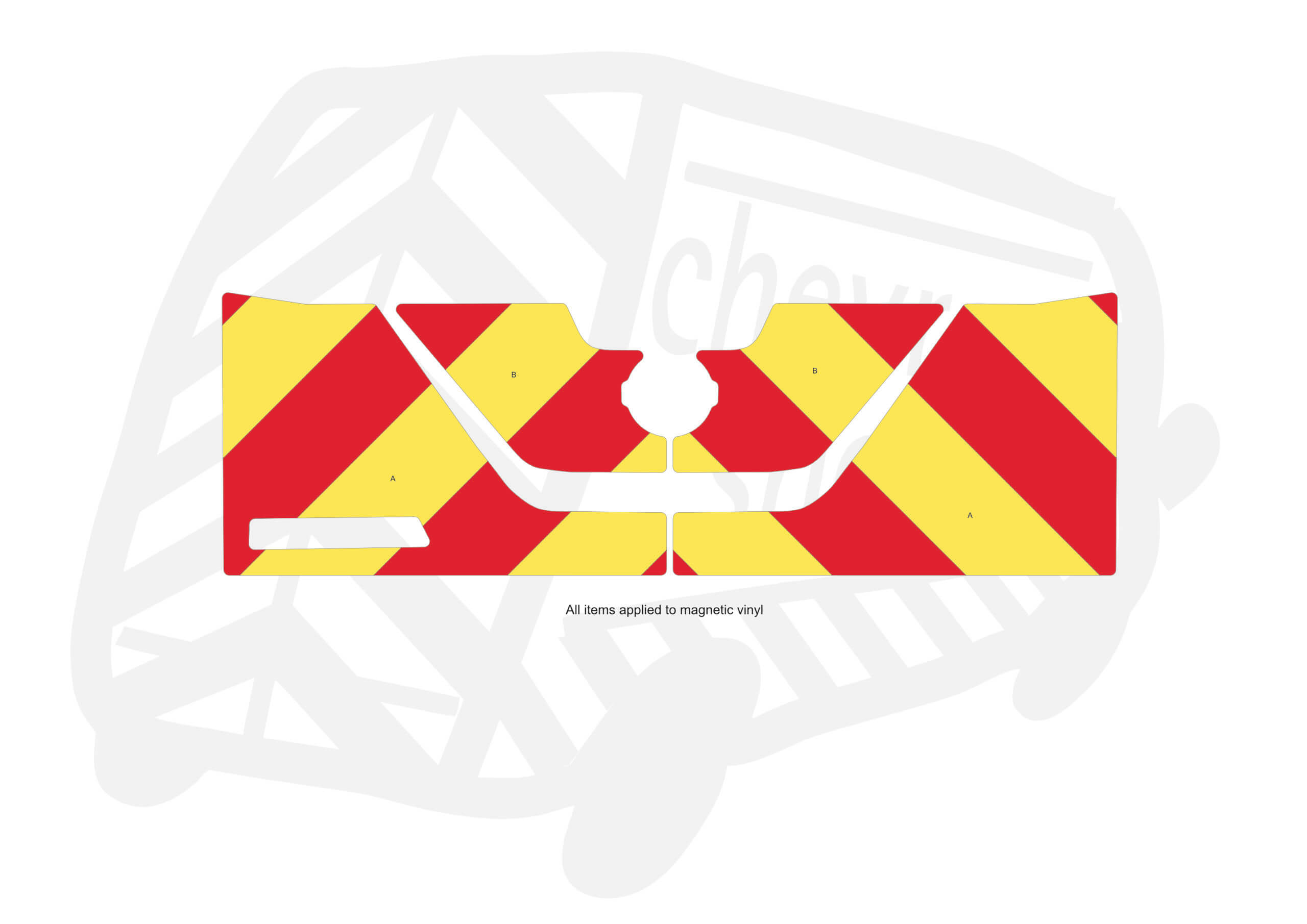 (Standard Kit) Up to windows panels only of 150mm Chevrons in Fluorescent Yellow and Engineering Grade Red Reflective – All applied onto magnetic.