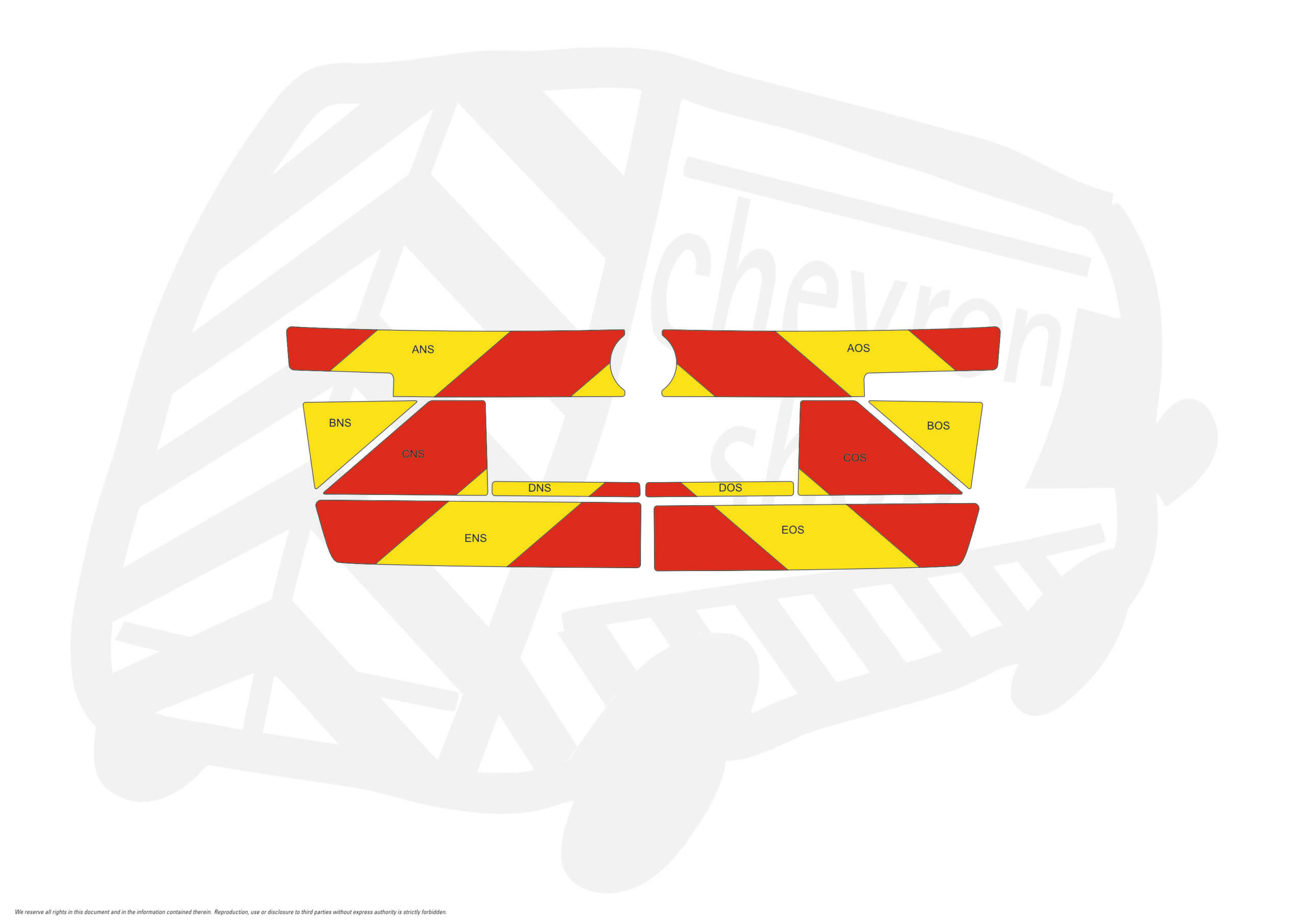 (Standard Kit) Up to windows panels only of 150mm Chevrons in Fluorescent Yellow and Engineering Grade Red Reflective – All applied onto magnetic.