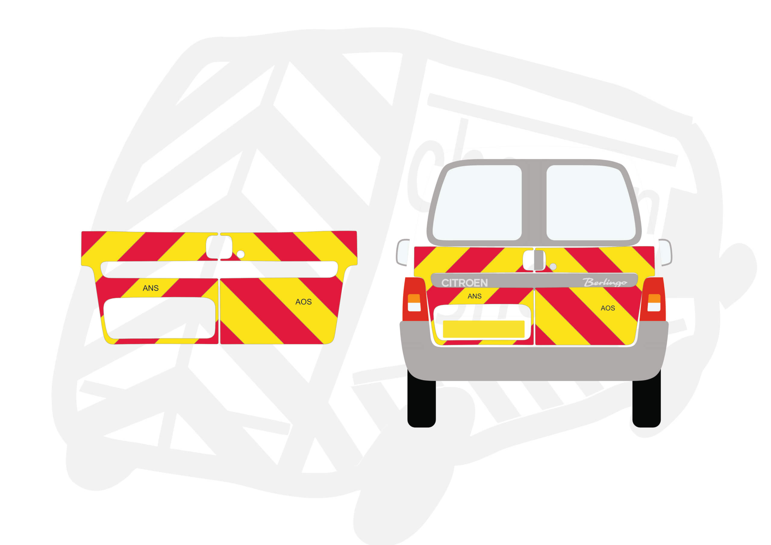 (Standard Kit) Up to windows 150mm Chevrons in Fluorescent Yellow and Engineering Grade Red Reflective.