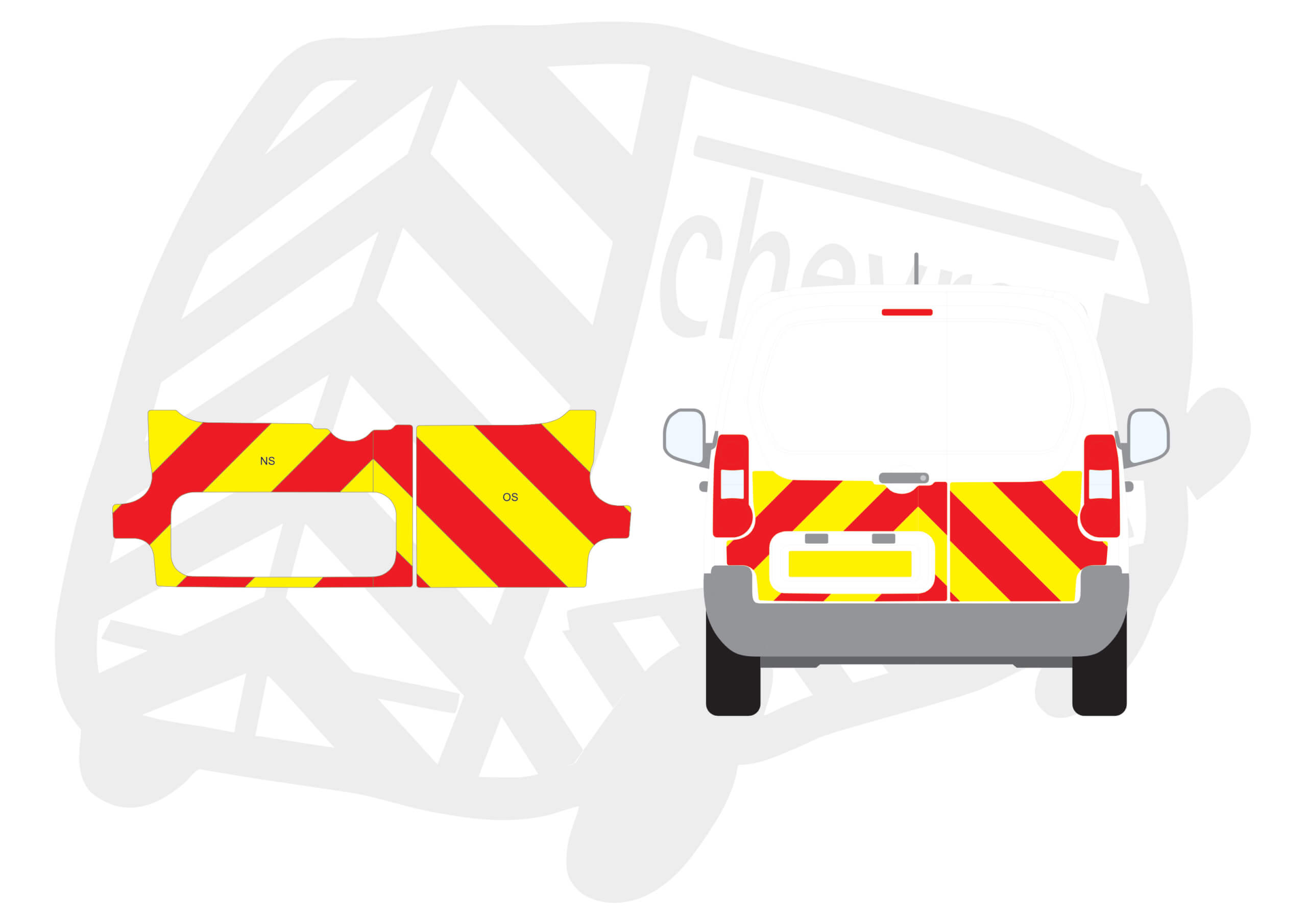 (Standard Kit) Up to windows 150mm Chevrons in Fluorescent Yellow and Engineering Grade Red Reflective.
