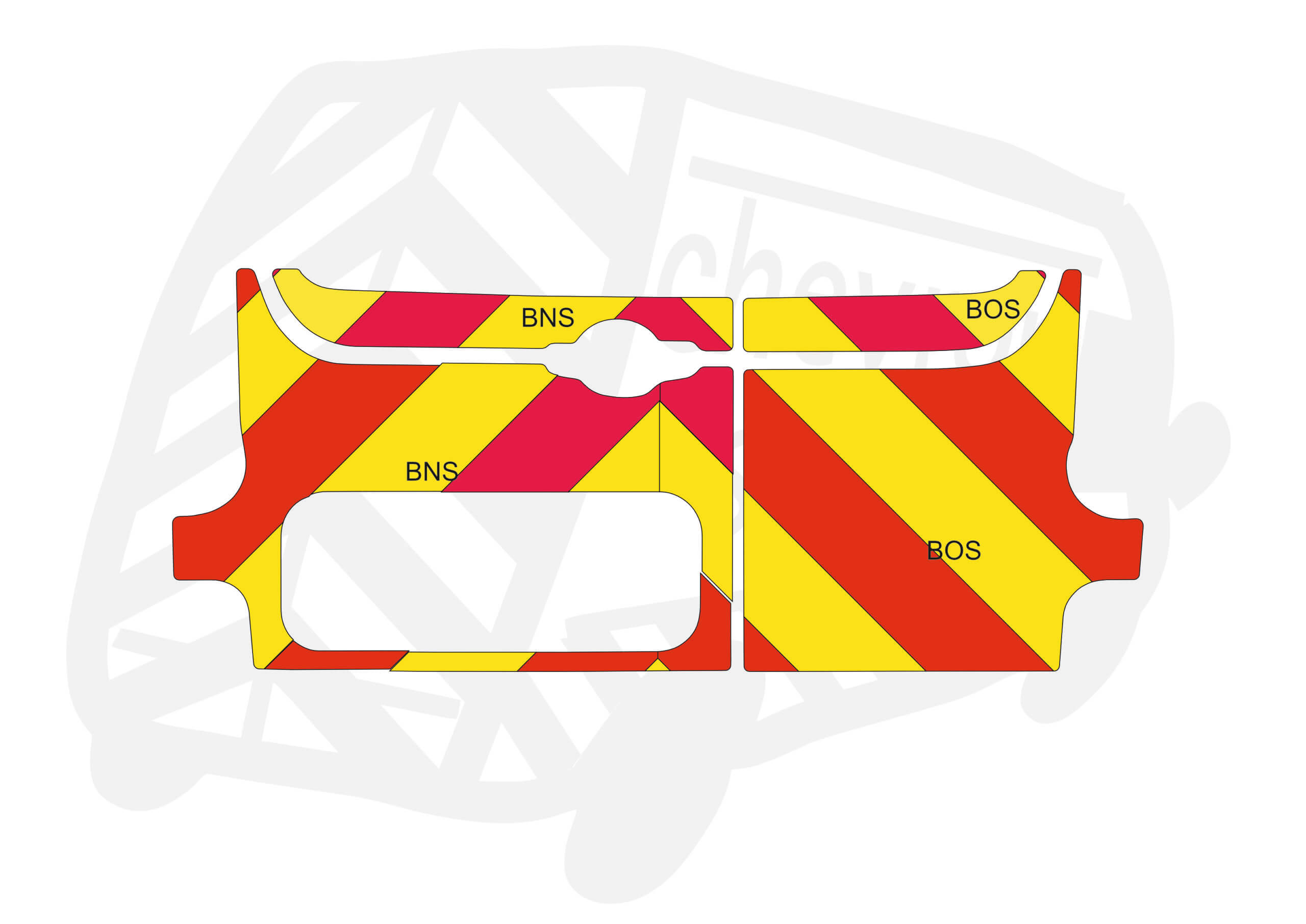 (Standard Kit) Up to windows 150mm Chevrons in Fluorescent Yellow and Engineering Grade R1 Red Reflective.