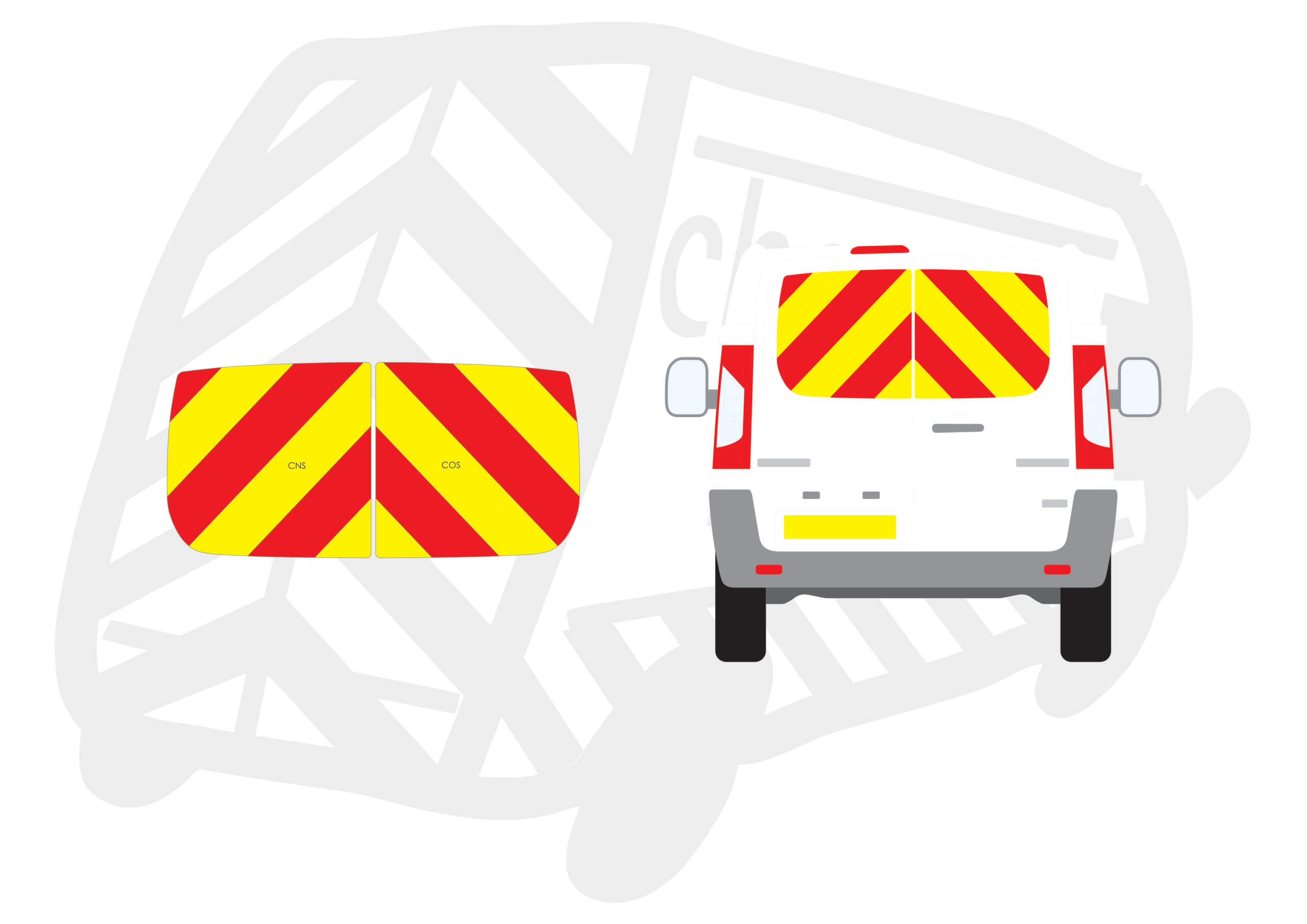 (Standard Kit) Window panels only 150mm Chevrons in Fluorescent Yellow and Engineering Grade R1 Red Reflective.