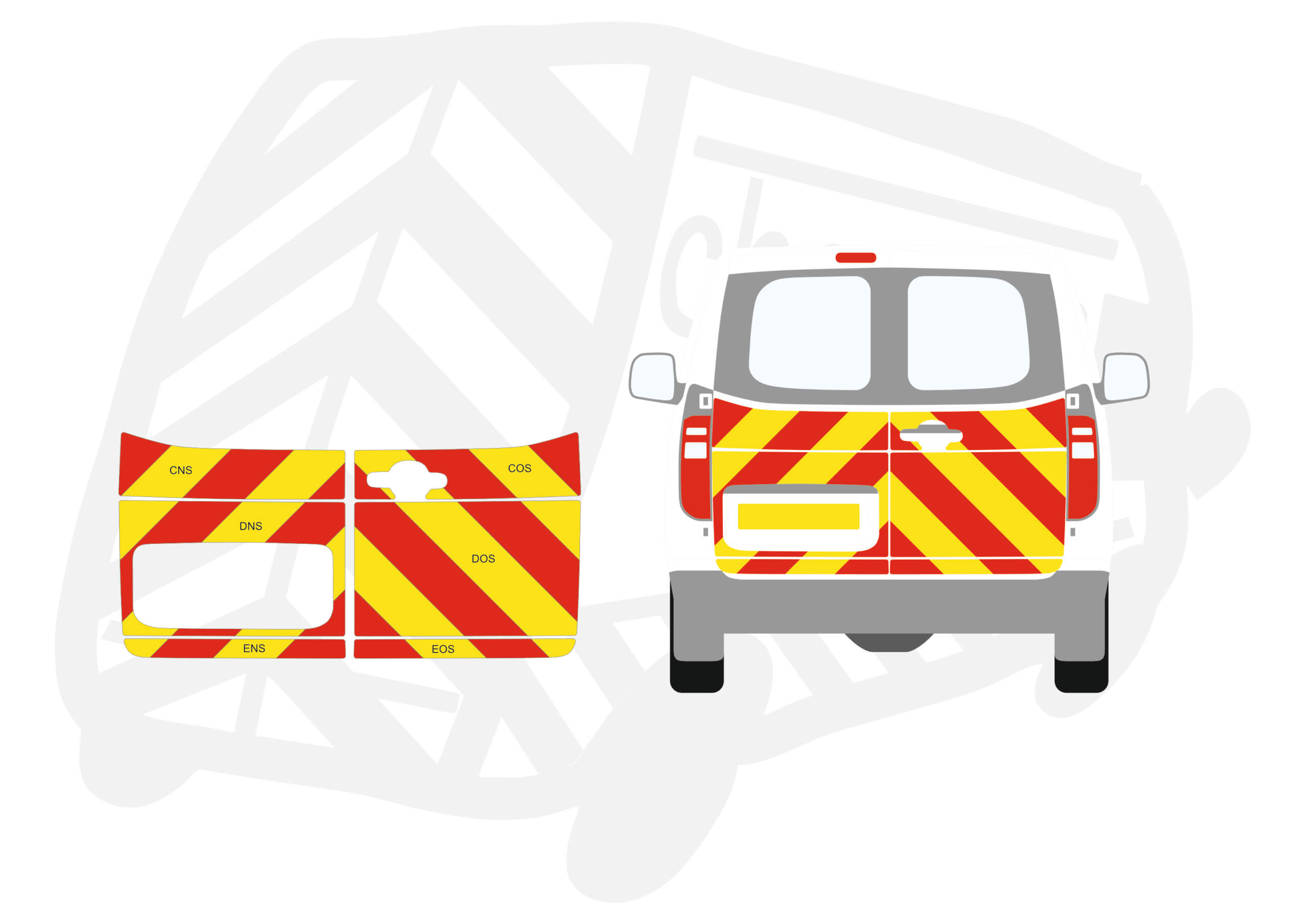 (Standard Kit) Below windows and uprights of 150mm Chevrons in Fluorescent Yellow and Engineering Grade Red Reflective.