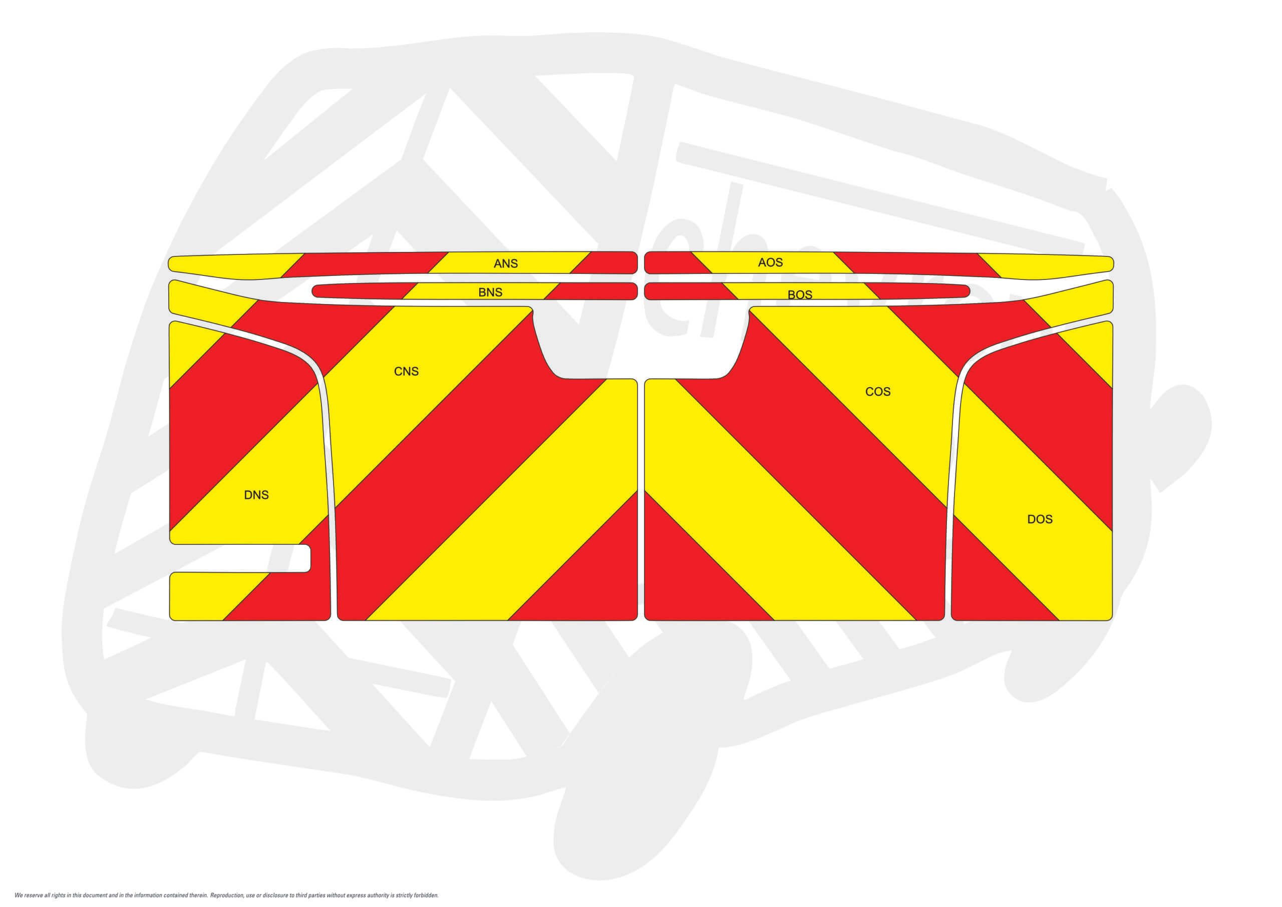 *Our Standard kits are supplied with Full Fluorescent Yellow panels (not individual stripes) with Red Reflective chevrons loosely taped in place.  If you require the DIY version – which is 150mm alternate stripes loosely taped together please select the DIY KIT for a reduction in price.  Material options will still need to be selected.
