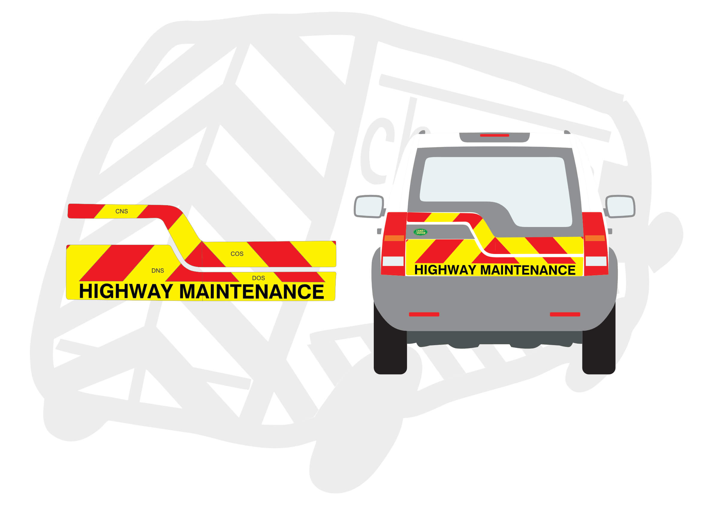 Chapter 8 Chevron Kit Landrover Discovery 2009-present Type A – Below windows only, with ‘Highway Maintenance’ text.