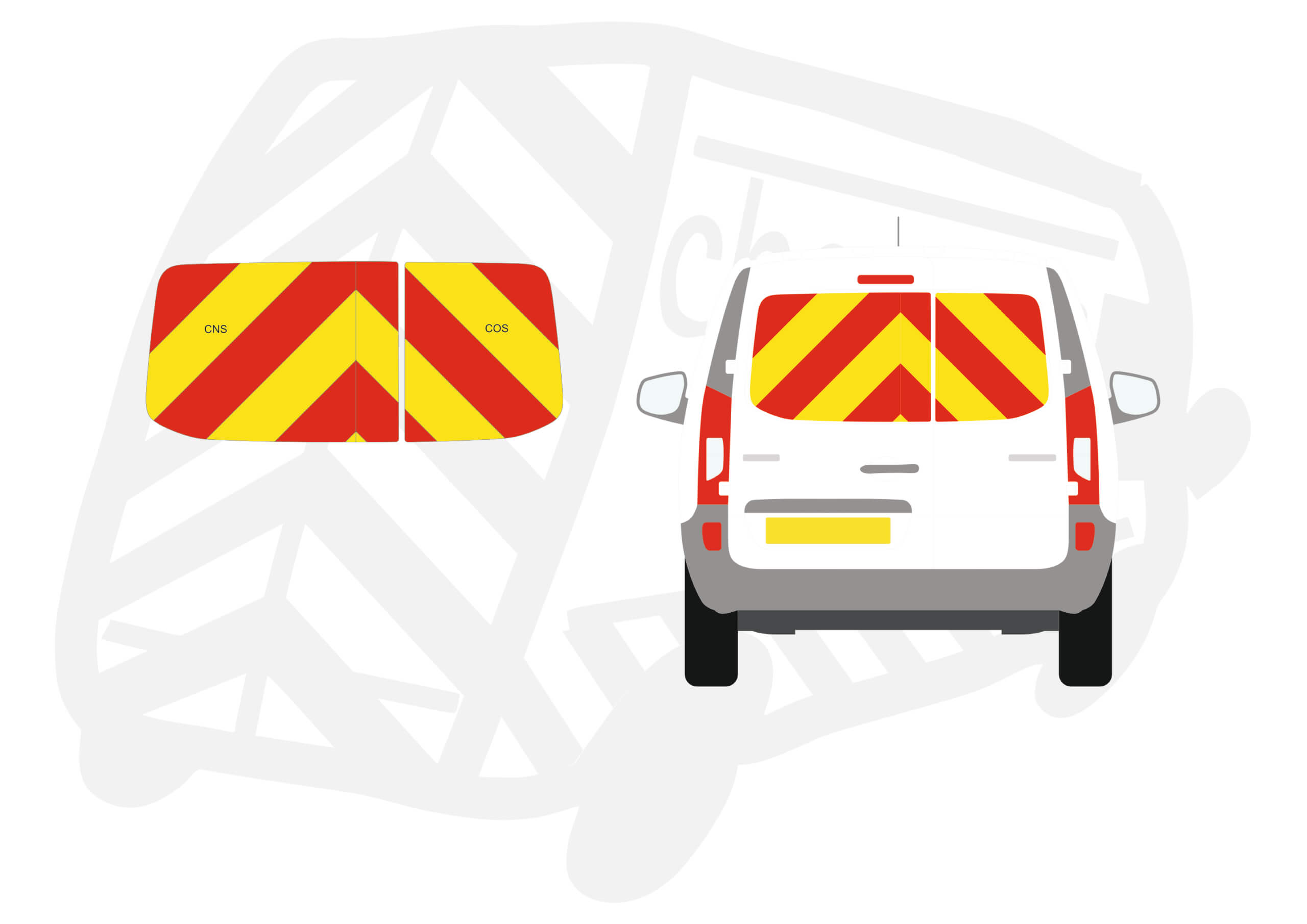 (Standard Kit) Window panels only of 150mm Chevrons in Fluorescent Yellow and Engineering Grade Red Reflective.
