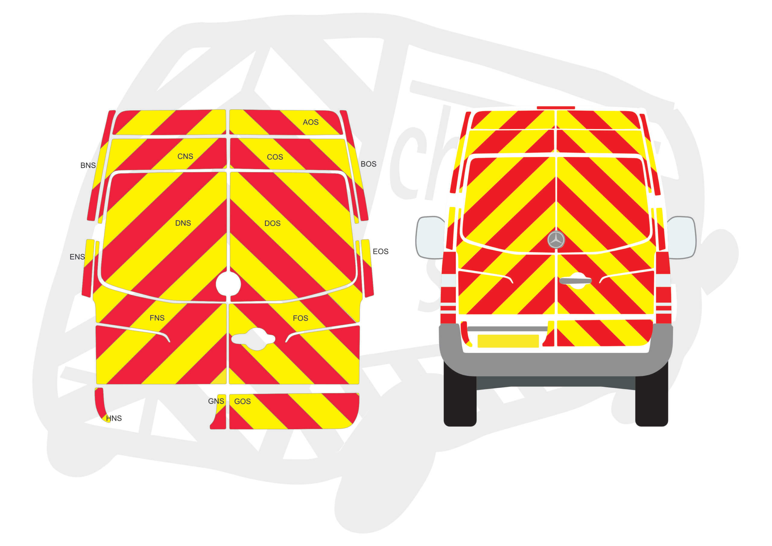 Chapter 8 Chevron Kit Mercedes Sprinter/Volkswagen Crafter 2006-2017 Type B – Full coverage rear chevrons including window panels.