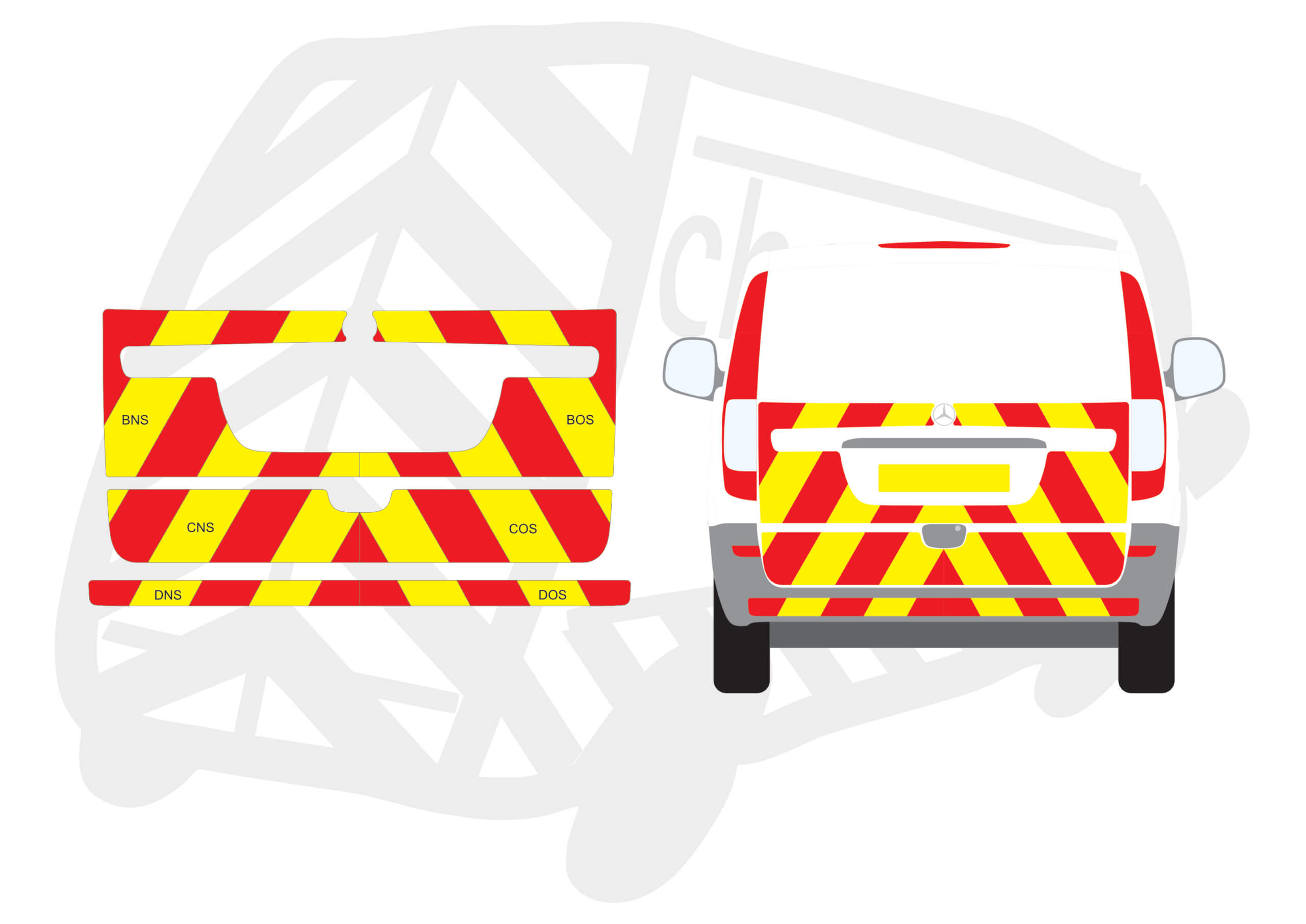 Chapter 8 Chevron Kit Mercedes Vito Tailgate 2004-2014 Type A – Below windows only.