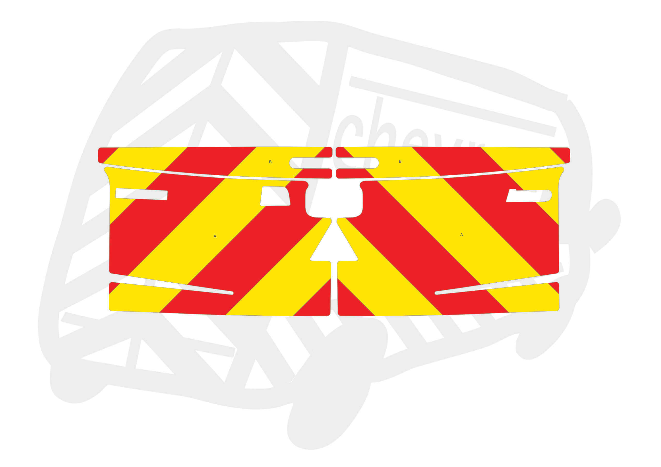 (Standard Kit) Below windows only of 150mm Chevrons in Fluorescent Yellow and Engineering Grade Red Reflective.