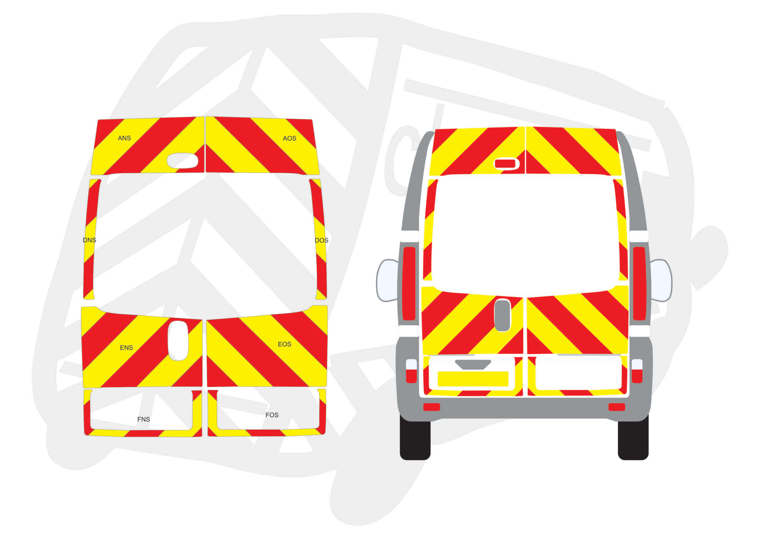 (Standard Kit) Up to windows and surrounds in Fluorescent Yellow and Engineering Grade Red Reflective chevrons.