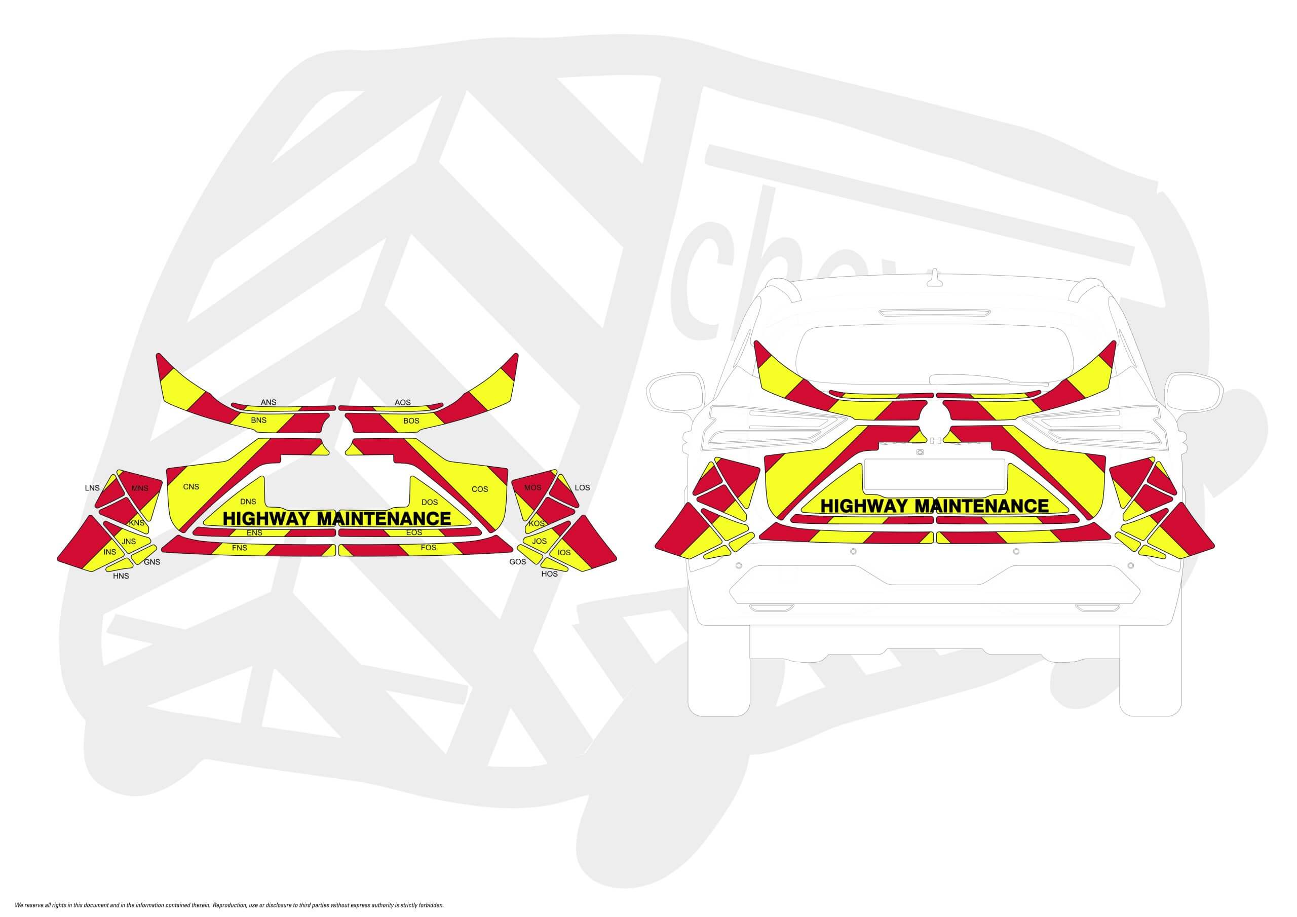 Chapter 8 Chevron Kit Nissan Qashqai 2022-Present Type A – Up to windows. Incorporating ‘HIGHWAY MAINTENANCE’ text in black gloss non-reflective.
