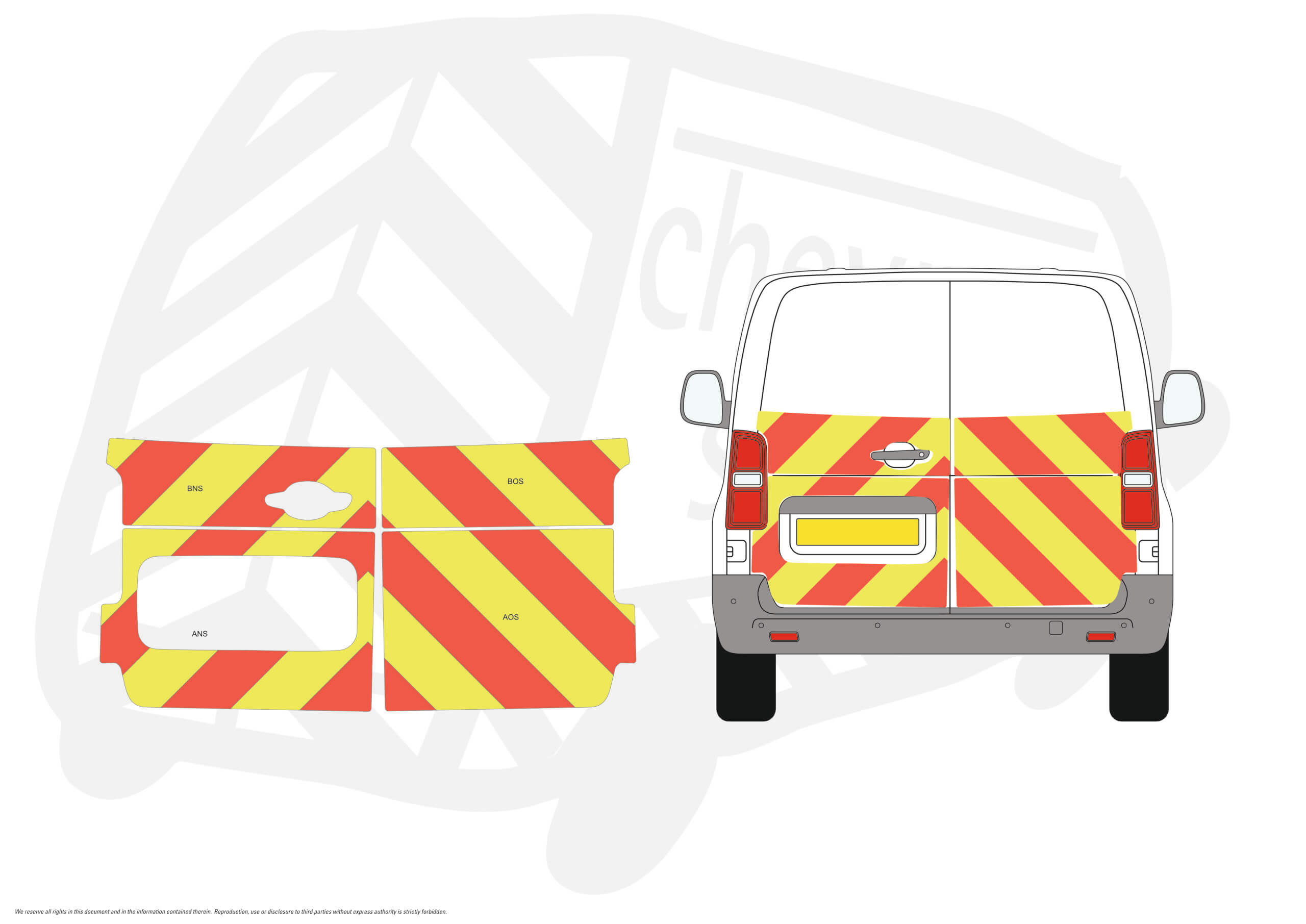 (Standard Kit) Up to windows 150mm Chevrons in Fluorescent Yellow and Engineering Grade Red Reflective.