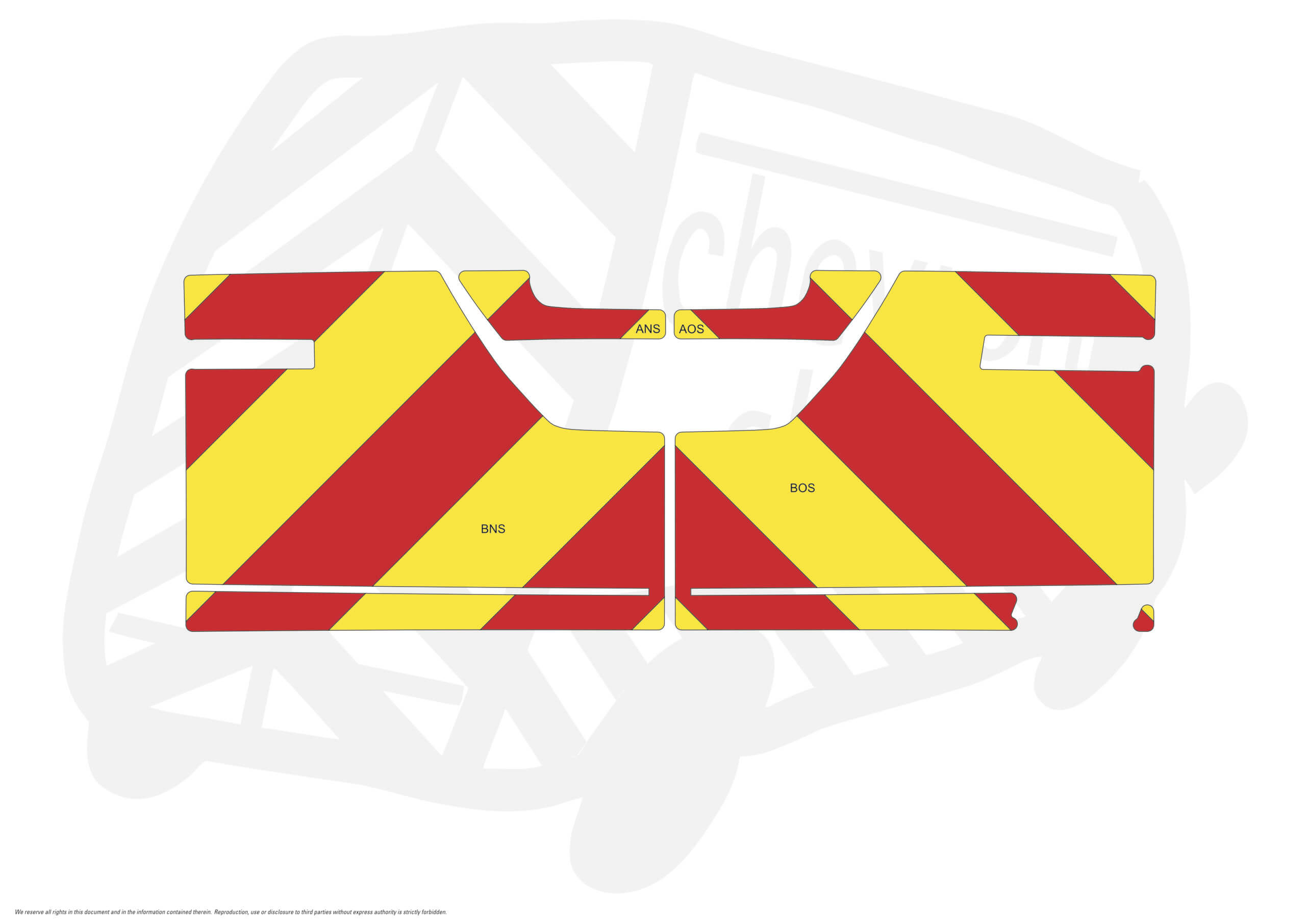 (Standard Kit) Tailgate chevrons of 150mm Chevrons in Fluorescent Yellow and Engineering Grade R1 Red Reflective.. This chevron kit has badges cutout.