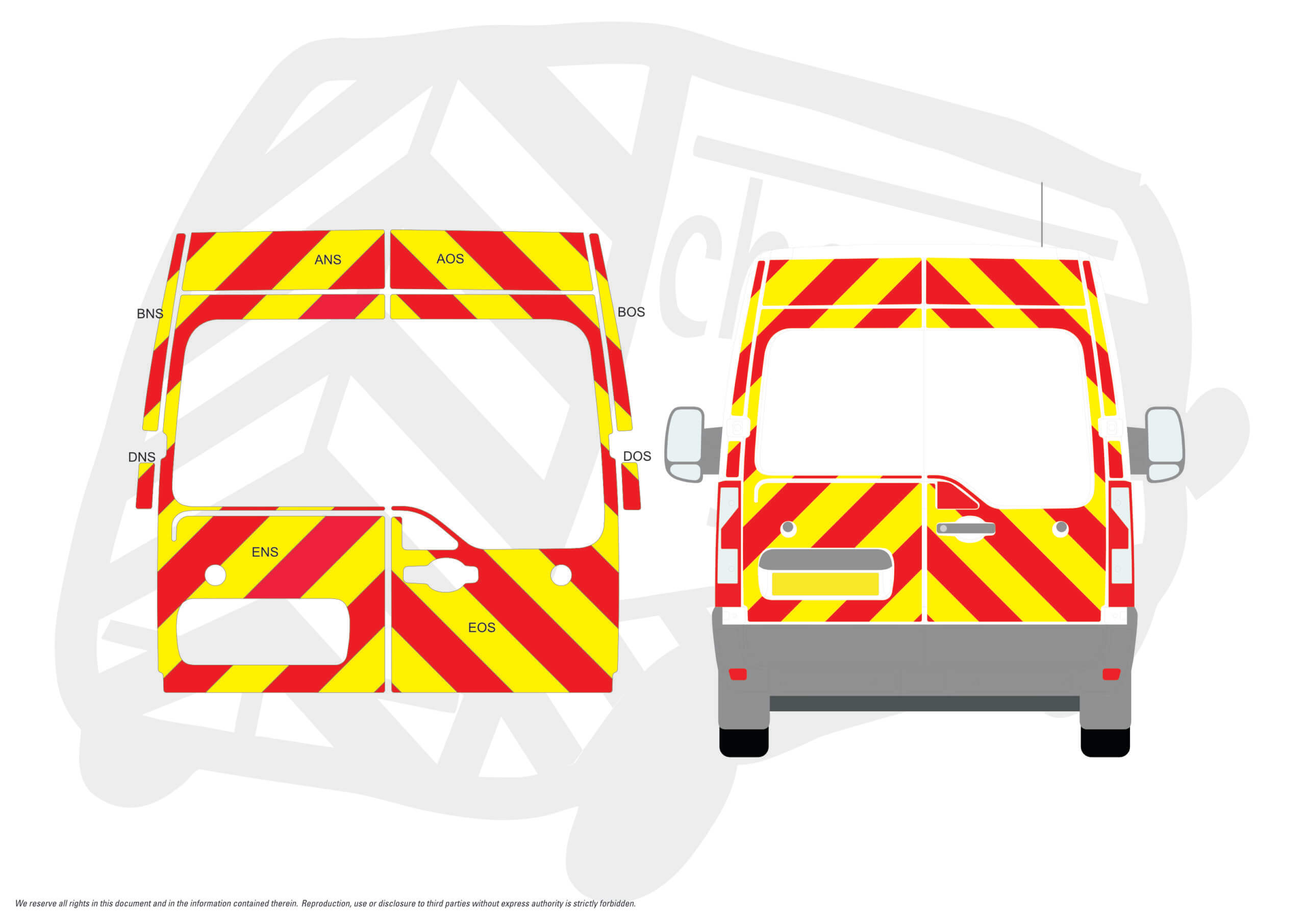 Chapter 8 Chevron Kit Renault Master/Nissan Interstar/Vauxhall Movano Medium Roof 2010-Present Type B – Below windows and surrounds.