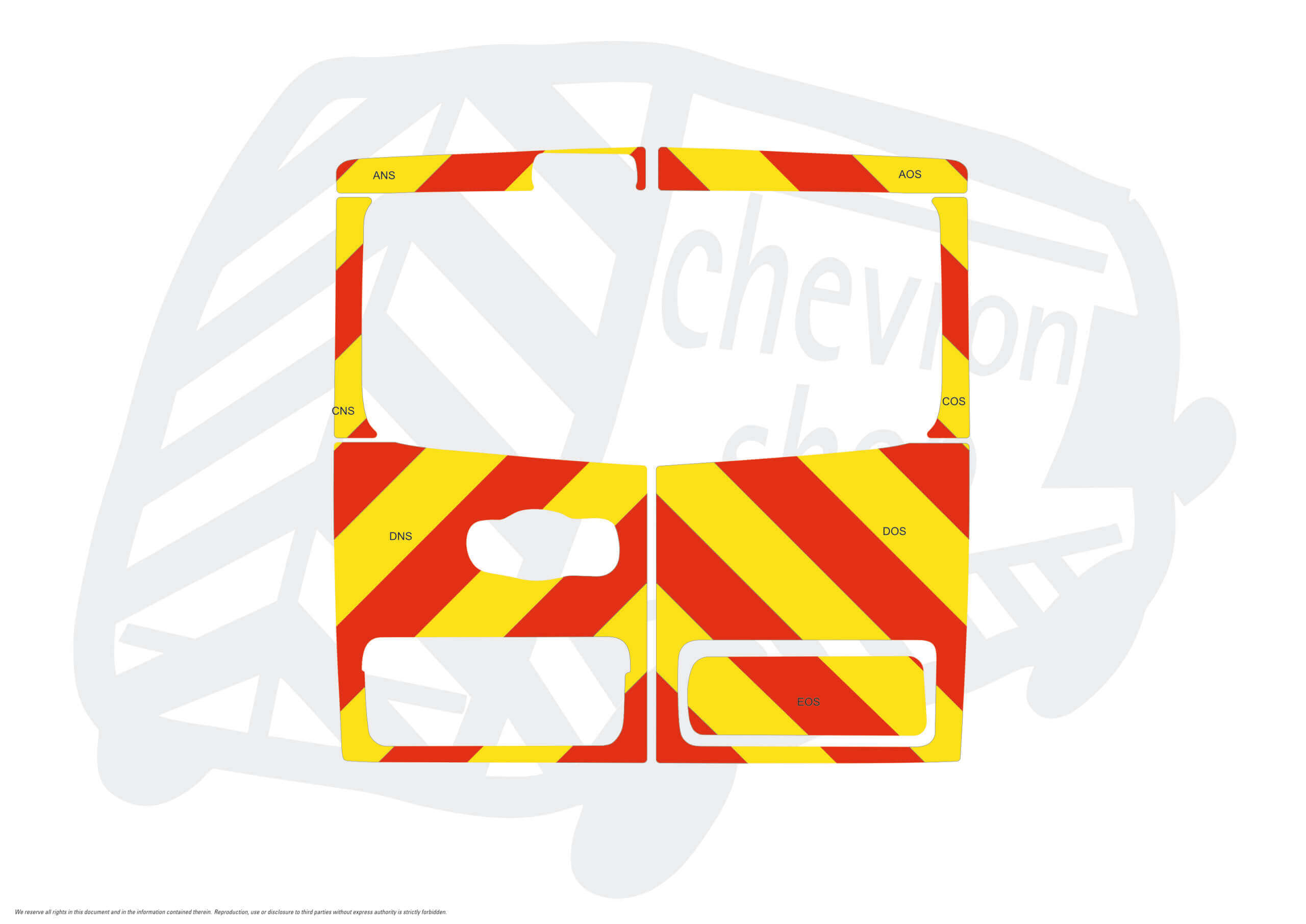 (Standard Kit) Up to windows and surrounds in Fluorescent Yellow and Engineering Grade Red Reflective chevrons.