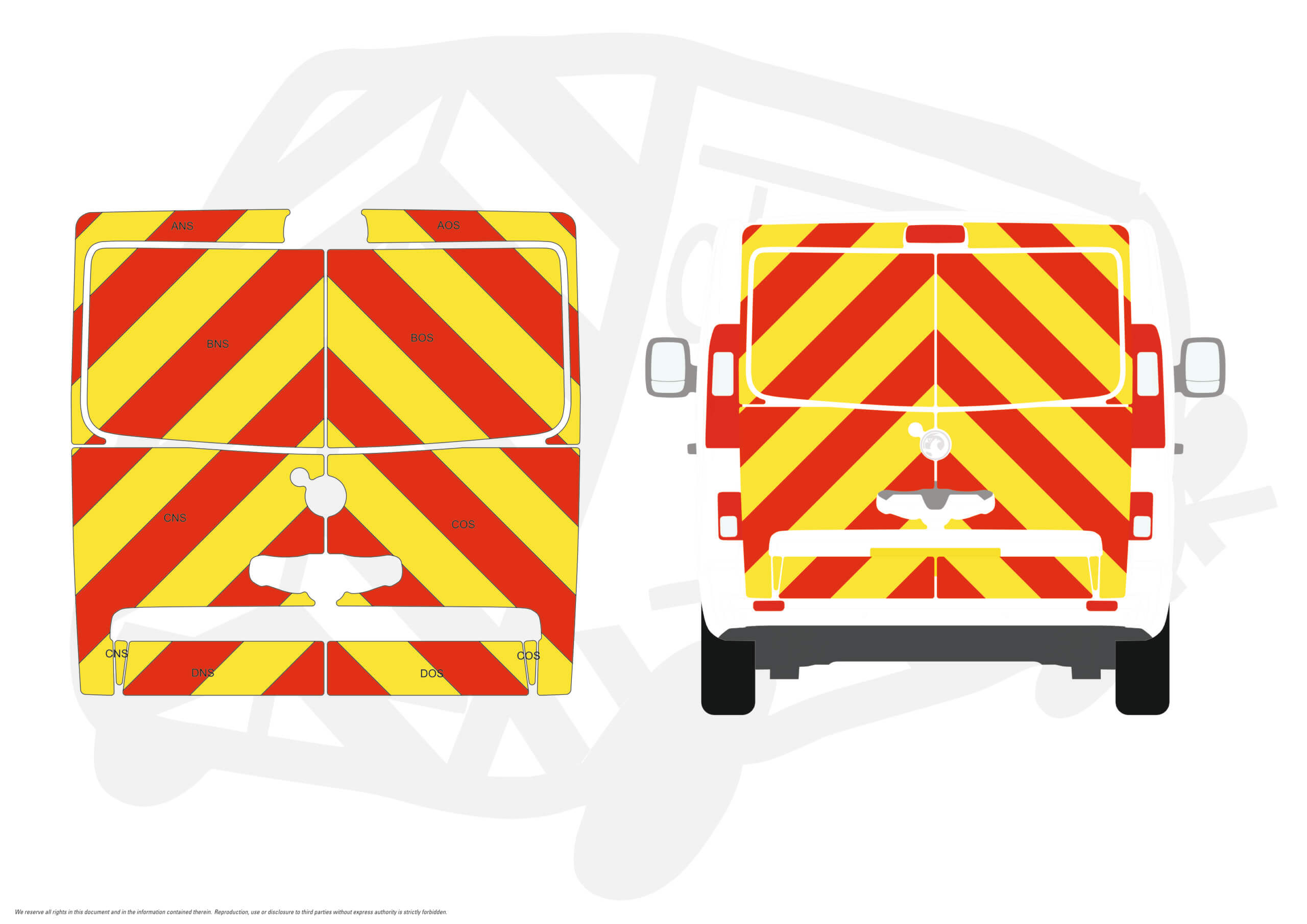Chapter 8 Chevron Kit Vauxhall Vivaro Tailgate Low Roof 2014-2019 Type C- Full coverage including windows.
