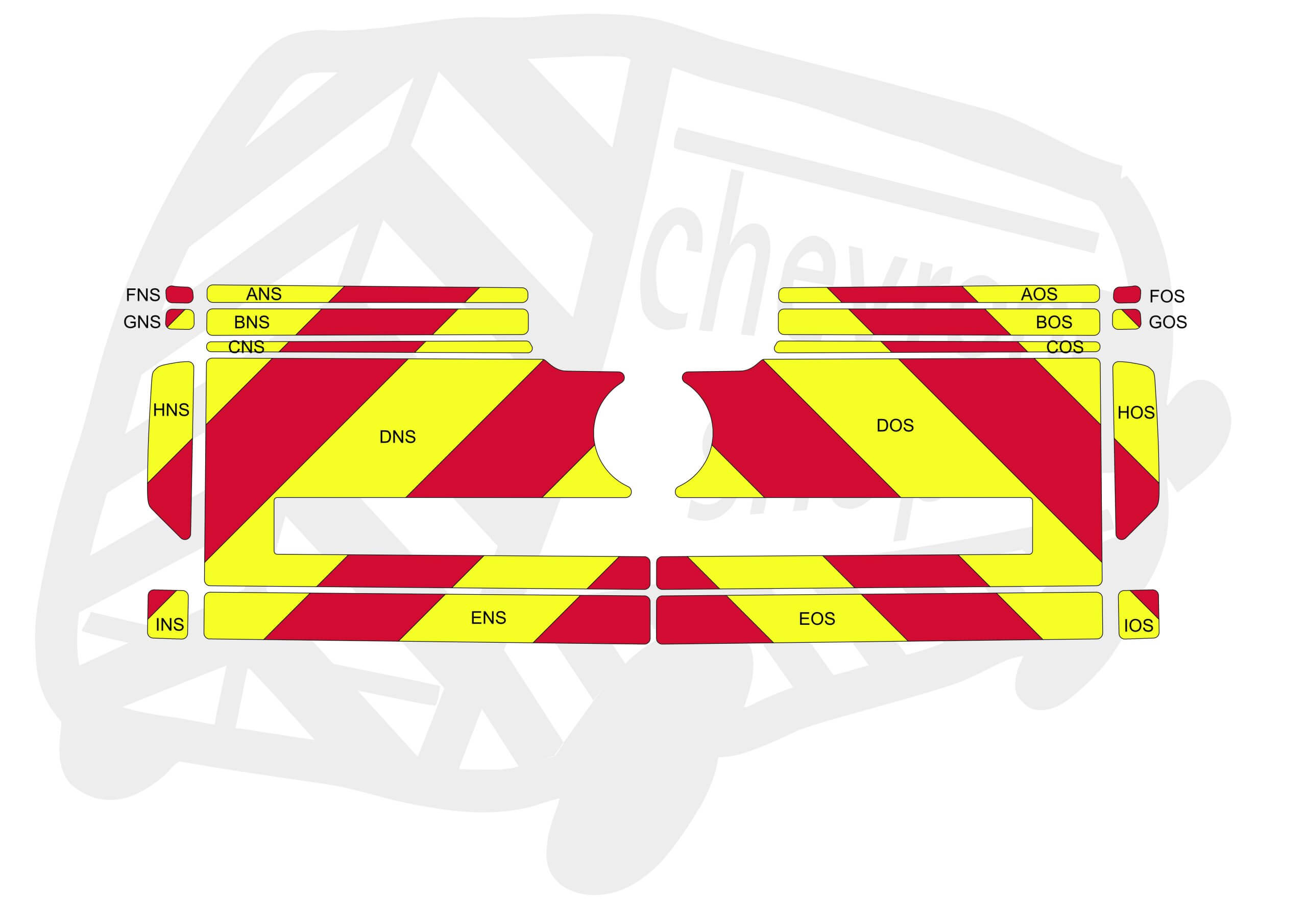 (Standard Kit)Tailgate chevrons only, 150mm Chevrons in Fluorescent Yellow and Engineering Grade Red Reflective.