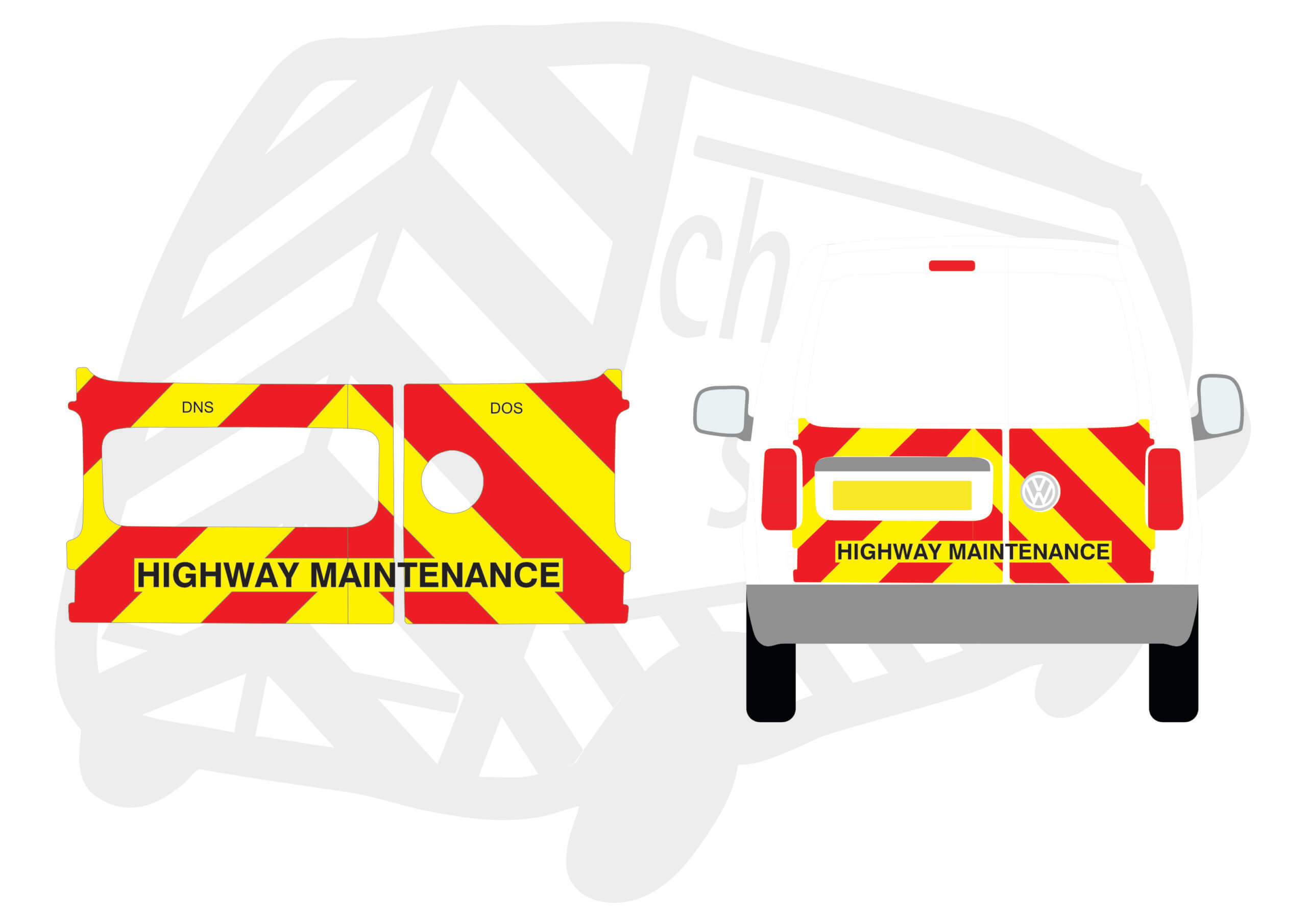 Chapter 8 Chevron Kit Volkswagen Caddy 2004-2015 Type A – Below windows only with ‘Highway Maintenance’ text.