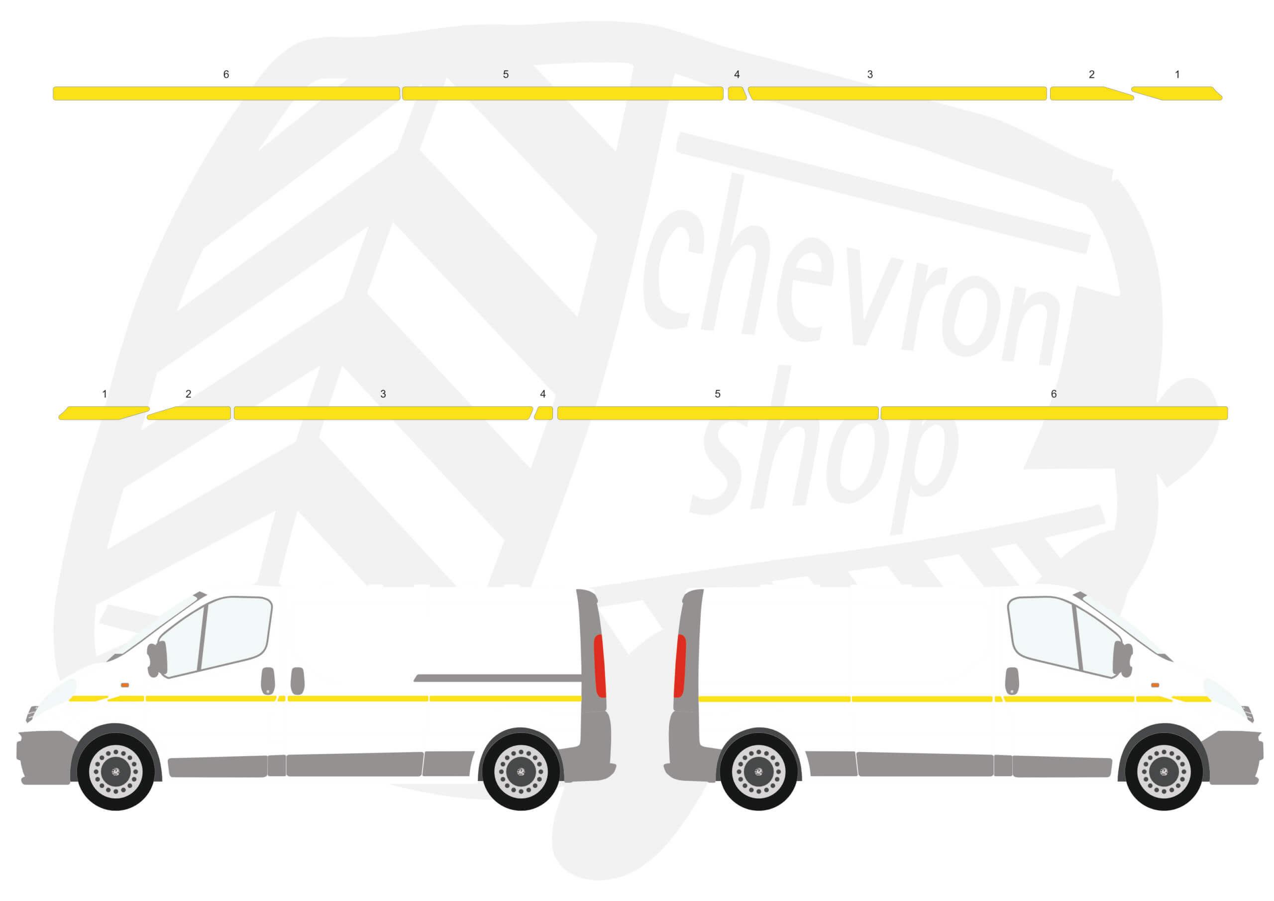 Yellow 50mm side stripe, cut to fit along the entire length of the vehicle.